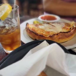 Stopped in for a caesar salad with blackened salmon and it hit the spot. The restaurant is bigger inside than expected and has a sports bar vibe with multiple TV screens around. But the food and service were top notch. Big enough to share or take some home. The next night I happened to have their thin crust pizza at my family's house for takeout and that was good too. Looking forward to trying their Greek food next time!